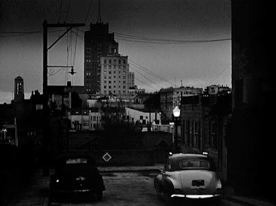 Parry confronts Madge Rapf (Agnes Moorehead) who then accidentally falls out of the window of her apartment – 1090 Chestnut Street, San Francisco, California
